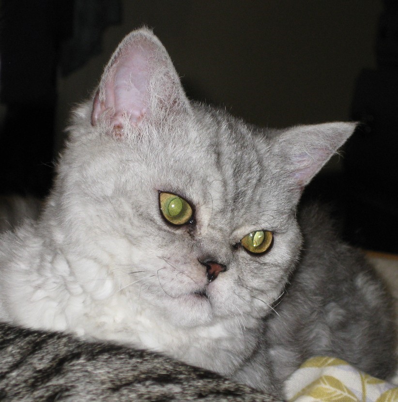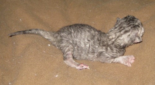 Katommyme Silver Fox x NiteWind Bedazzled F3, SH, Curly Blue Silver Torbie with White